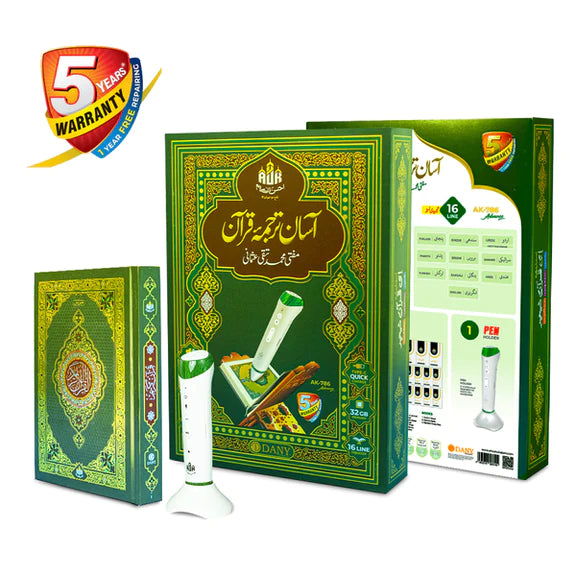 This innovative digital pen features the renowned recitation of Mufti Taqi Usmani, allowing you to listen to and interact with the Quran in a unique and immersive way. With 32GB of storage, you can access a vast library of Quranic content, including recitations, translations, and commentary.